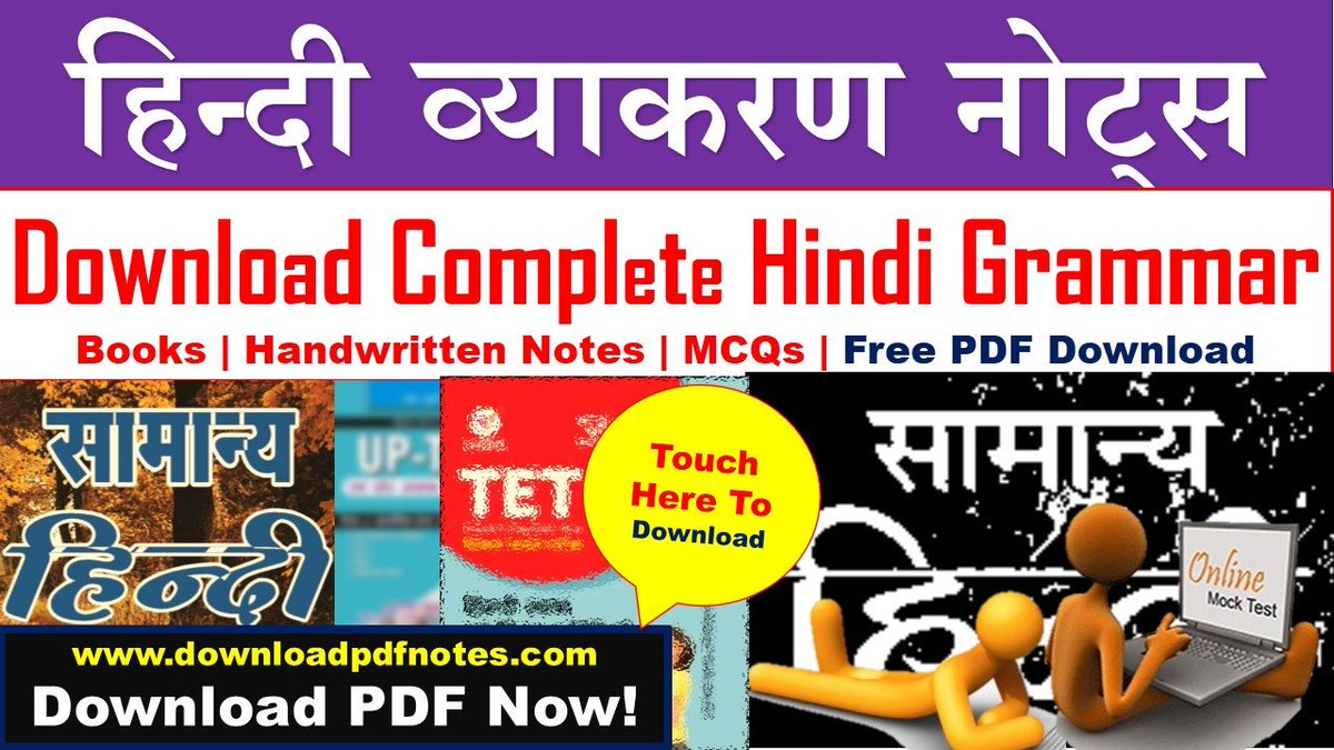 Here all topics related to Hindi grammar are explained with examples by classifying them into small parts. In which you can get Hindi Grammar Book PDF notes for many competitive exams from various Hindi subjects like - SSC, BANK, RAILWAY, IAS, PCS, Railway, Police Etc.Competitive Exams, available notes through the link given below.