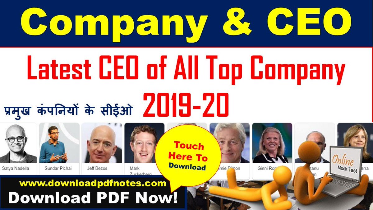 Free latest updates of CEO and top Company Free PDF for UPSC, State Exams, SSC, MTS, CHSL, CGL, Y group air-force, and other various exams Free PDF download in Hindi and English