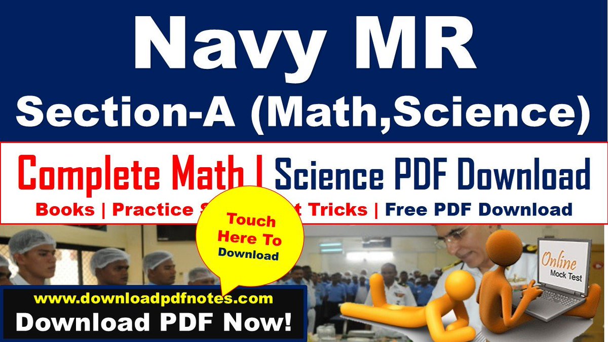 Indian Navy MR Section A (Science and math) full latest complete notes and study material, important questions MCQs, practice sets, Free mock test, model paper and latest new syllabus pdf free links are available in this page.