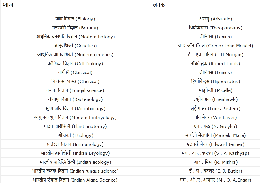 जीव विज्ञान की प्रमुख शाखाओं के जनक | Father of major branches of science के नि: शुल्क PDF अध्ययन सामग्री लिंक-