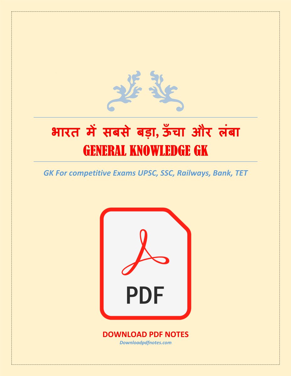 भारत में सबसे बड़ा, ऊँचा और लंबा PDF | GK For competitive Exams UPSC, SSC, Railways, Bank, TET