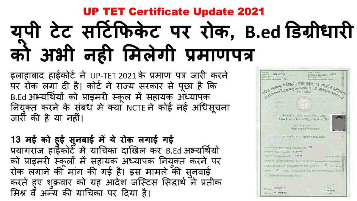 UP TET Certificate 2021: यूपी टेट सर्टिफिकेट पर रोक, B.ed डिग्रीधारी को अभी नही मिलेगी प्रमाणपत्र