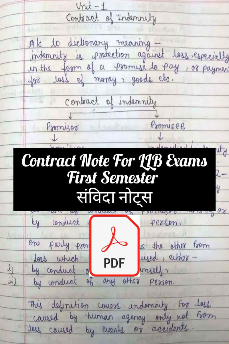 Download New Contract Notes For LLB First Semester in Hindi and English Free PDF Download. Latest Edition of Contract Notes handwritten and prepared by topper of exam. एलएलबी पहले सेमेस्टर के संविदा के नोट्स फ्री पीडीएफ.