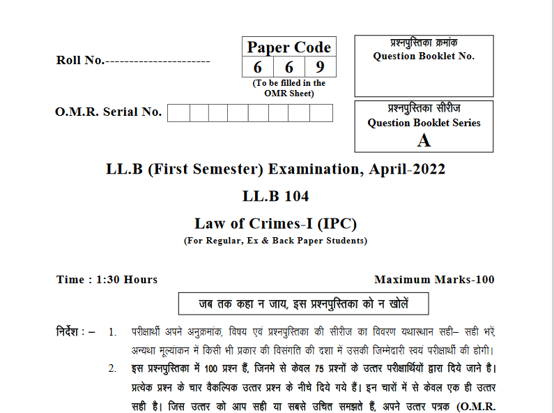 Download 2021, 2022 and other year Solved Question Paper PDF For LLB 1st Semester Exam (LLB 1st Year Exam 2024). All Five Questions Paper are available (Constitution-1, Contract-1, IPC, Tort and Hindu Law) here in pdf format. Try it free before Exam.